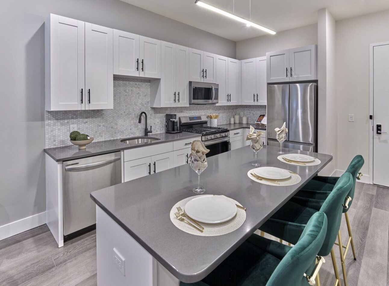 Contemporary layouts and thoughtful design make entertaining guests or enjoying a quiet night in effortless. If cooking is your passion then the stylish gourmet kitchens provide everything you need to create an at-home fine dining experience. The chic quartz countertops and marble backsplashes enhance the elegance of the kitchens while the numerous stainless-steel appliances, including extras such as an ice maker and garbage disposal, make cooking and hosting a breeze.